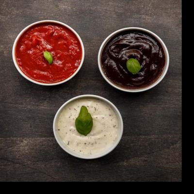 Do wyboru czosnkowy, musztardowo-majonezowy, majonez bazyliowy, BBQ